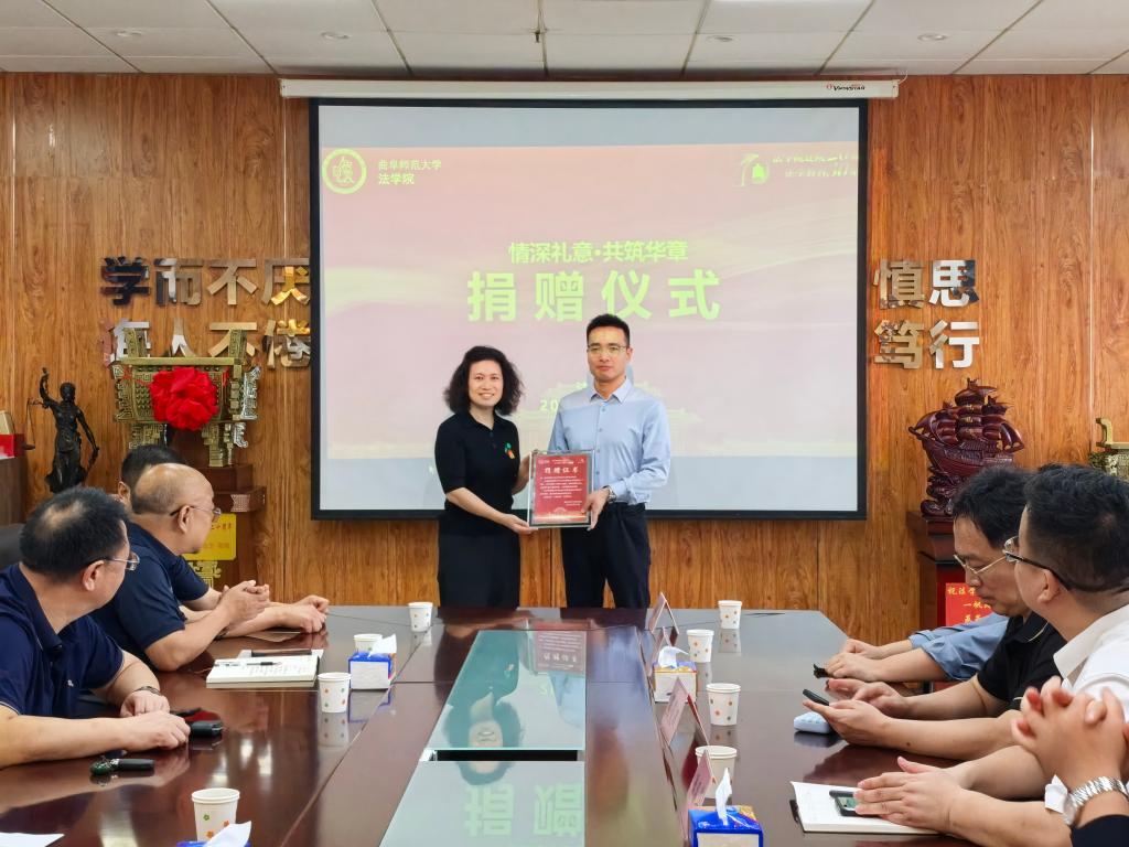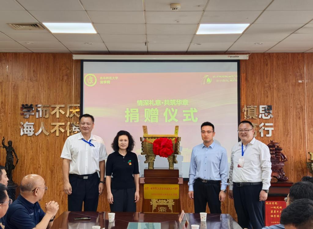会上,2005级校友张鑫、周飞代表2005级全体校友向学院捐赠了一尊鼎。周彩霞向张鑫颁发捐赠证书。鼎在中国传统文化中象征稳固、昌盛与权威,捐赠此鼎,寓意祝愿学院根基稳固、事业昌隆,也象征校友与学院之间的情谊如鼎般坚实、历久弥坚。此举承载着学子对母校的深切情谊与美好祝福,是对母院事业的宝贵支持。
