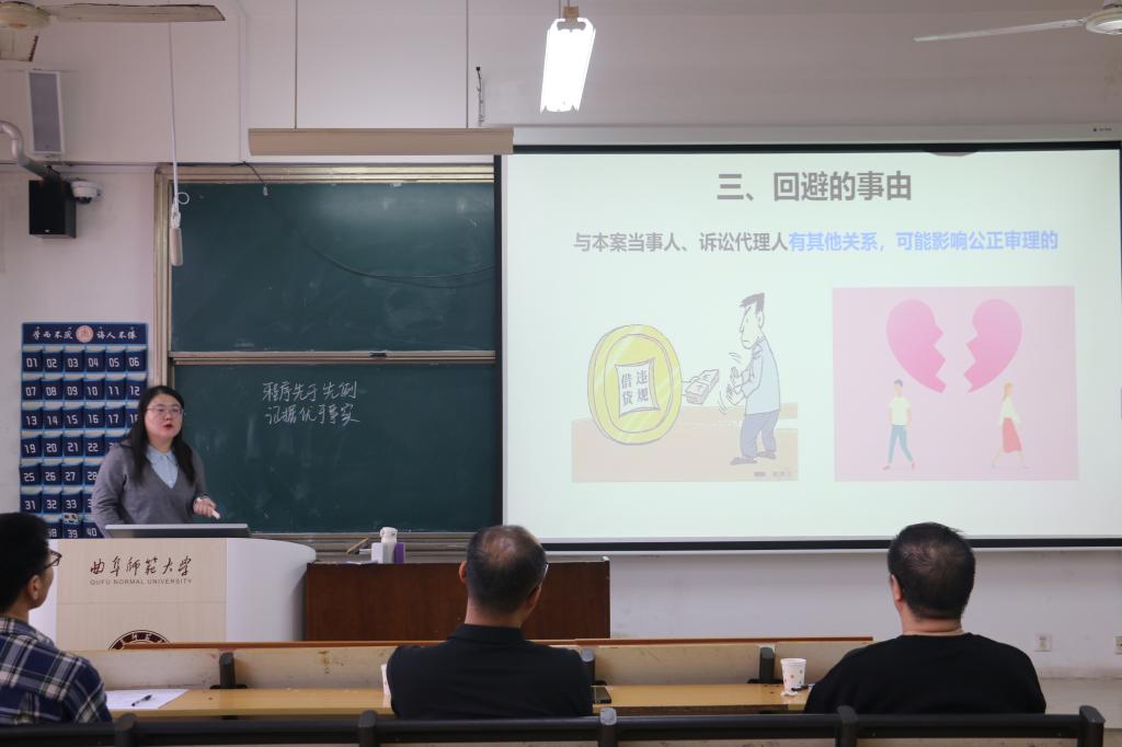 两位参赛教师依次登台,每人先后进行了为时二十分钟的课程讲授。她们分别围绕民事诉讼法、行政诉讼法精心设计教学内容,从案例分析到法条解读,从互动问答到知识总结,青年教师们凭借扎实的专业功底、灵活的课堂应变能力和富有感染力的教学风格,充分展现了我院青年教师队伍的教学活力与成长潜力。